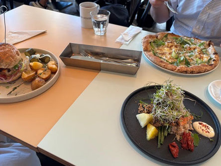 トークイベントを引き受けていただいたグラフィックデザイナー新村氏との打ち合わせは、ランチとデザートを食べながら。デザートは一度は入ってみたかったBAKE &